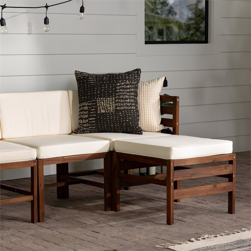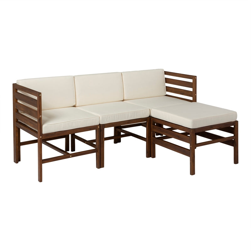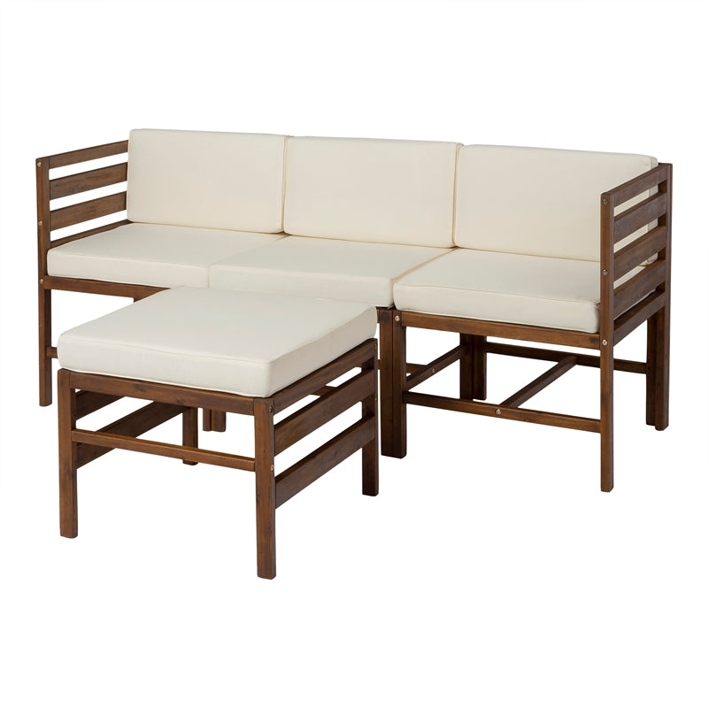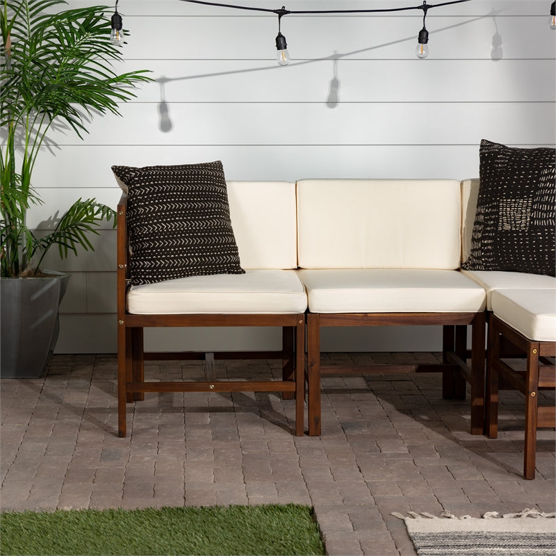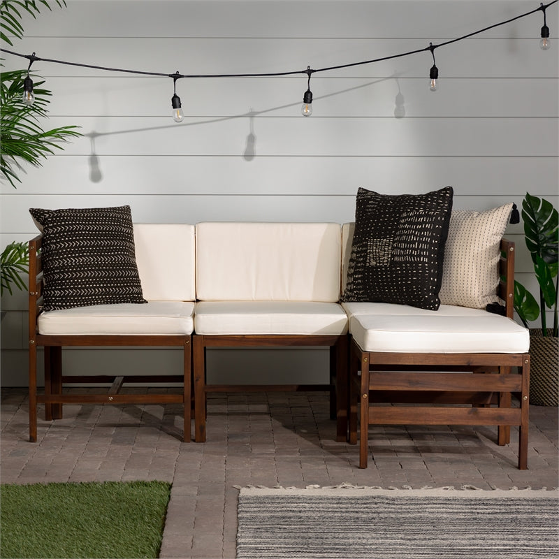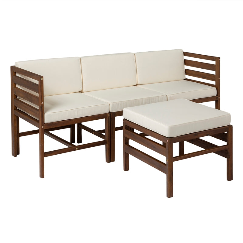 4-Piece Modular Acacia – 3 seat + Ottoman – Dark Brown