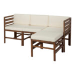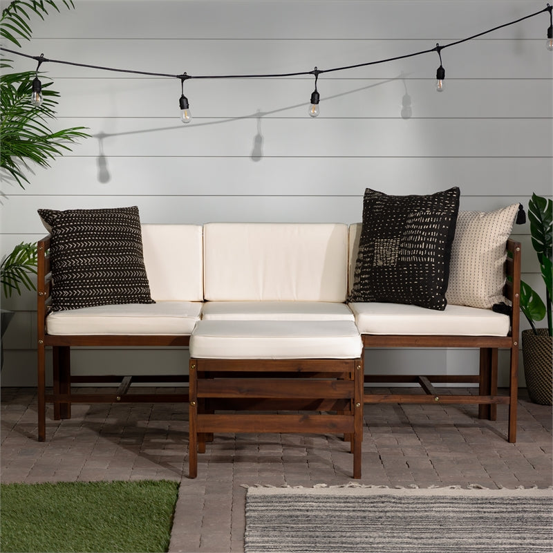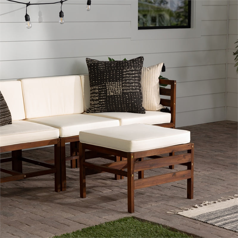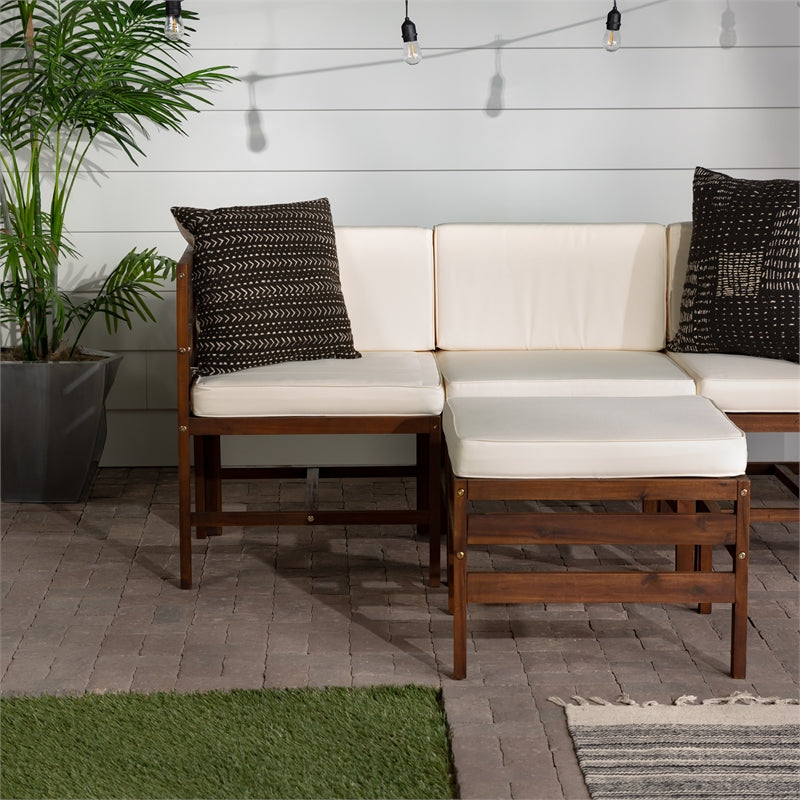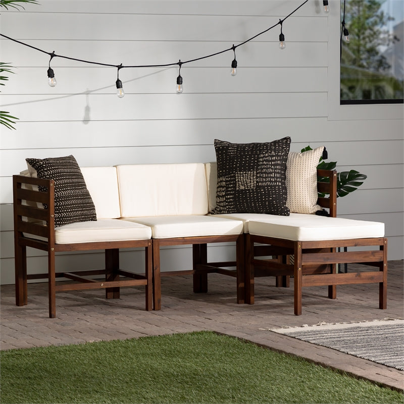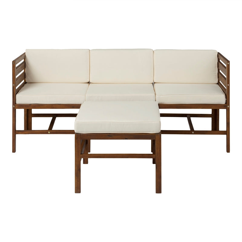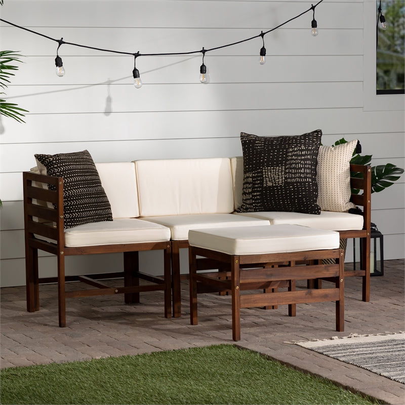 4-Piece Modular Acacia – 3 seat + Ottoman – Dark Brown