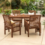 Acacia Wood Simple Patio 5-Piece Dining Set – Dark Brown