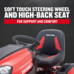 ✅ Soft-Touch Steering Wheel & High-Back Seat – Comfort for extended mowing sessions