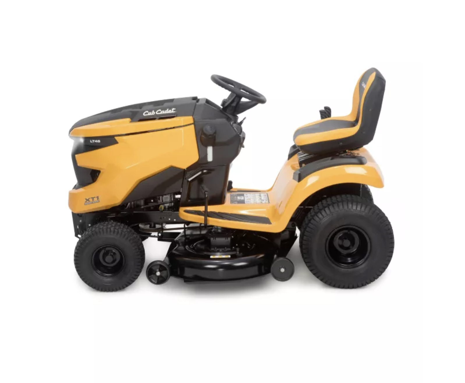 Hop on the Cub Cadet XT1 LT46 riding lawnmower and feel the thrill of turning your backyard into a pristine landscape. This elite gas-powered machine is powered by a 23 HP KOHLER 7000 Series twin-cylinder engine, giving you all the muscle you need to tackle even the toughest yards. The 46-inch stamped deck, built like a tank, ensures reliability and that signature Cub Cadet cut every time. No more fiddling with shift gears; its hydrostatic transmission lets you just push the pedal and go. Comfort? Oh, it’s got that too-thanks to an adjustable 15-inch high back seat with a 10-degree incline and slide slope. And don’t worry about the battery; the durable AGM battery ensures a longer lifespan and less maintenance, making sure you’re always ready to roll. Got obstacles? The responsive steering system with a 16-inch turning radius has you covered. Plus, with 12 cutting height positions, LED headlights for those early or late mowing sessions, and optional seasonal attachments like a snow blower or twin bagger, this lawn tractor is ready for anything. Best part? It comes with a 3-year warranty and the support of Cub Cadet’s nationwide network of dealers. Get ready for an unrivaled mowing experience!