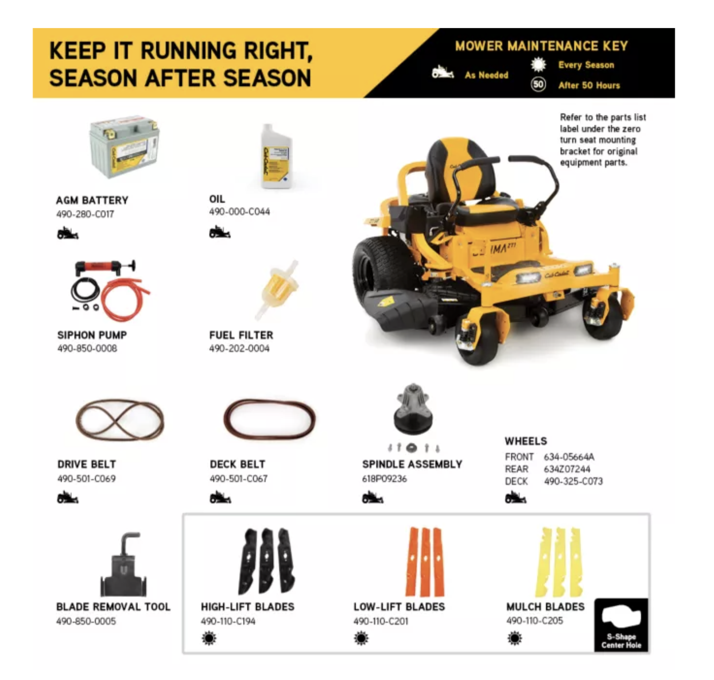 - Deck: The deck is protected by the Cub Cadet triple guard corrosion defense system with e-coat and a lifetime warranty, ensuring durability and longevity.