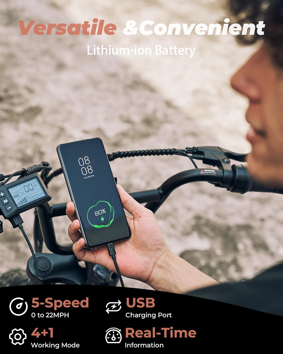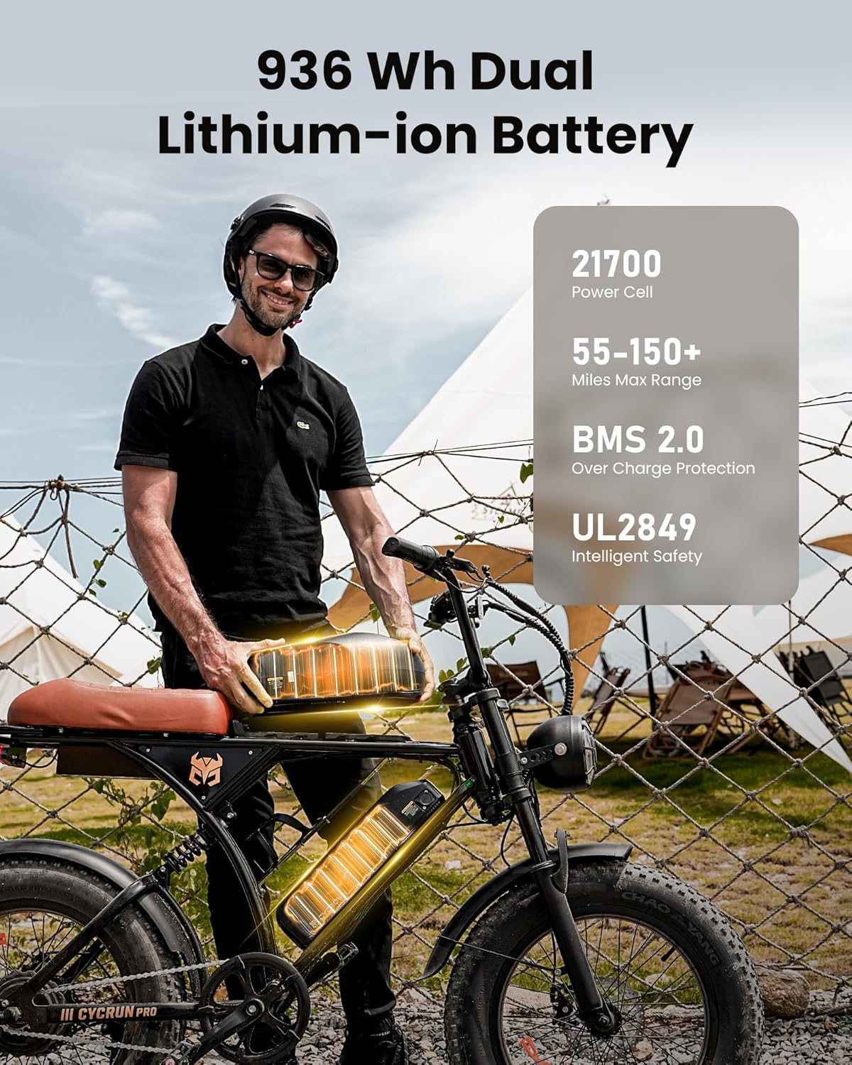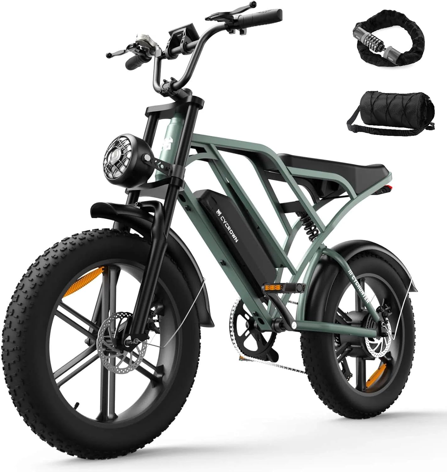 CYCROWN Electric Bike for Adults,Peak 1000W/1500W Motor,20/28MPH 55-150Mile ebikes for Adults with 10.4AH/13AH/26AH Battery,20″ Fat Tire Electric Dirt Bike Commuting Off Road Ebike, UL2849