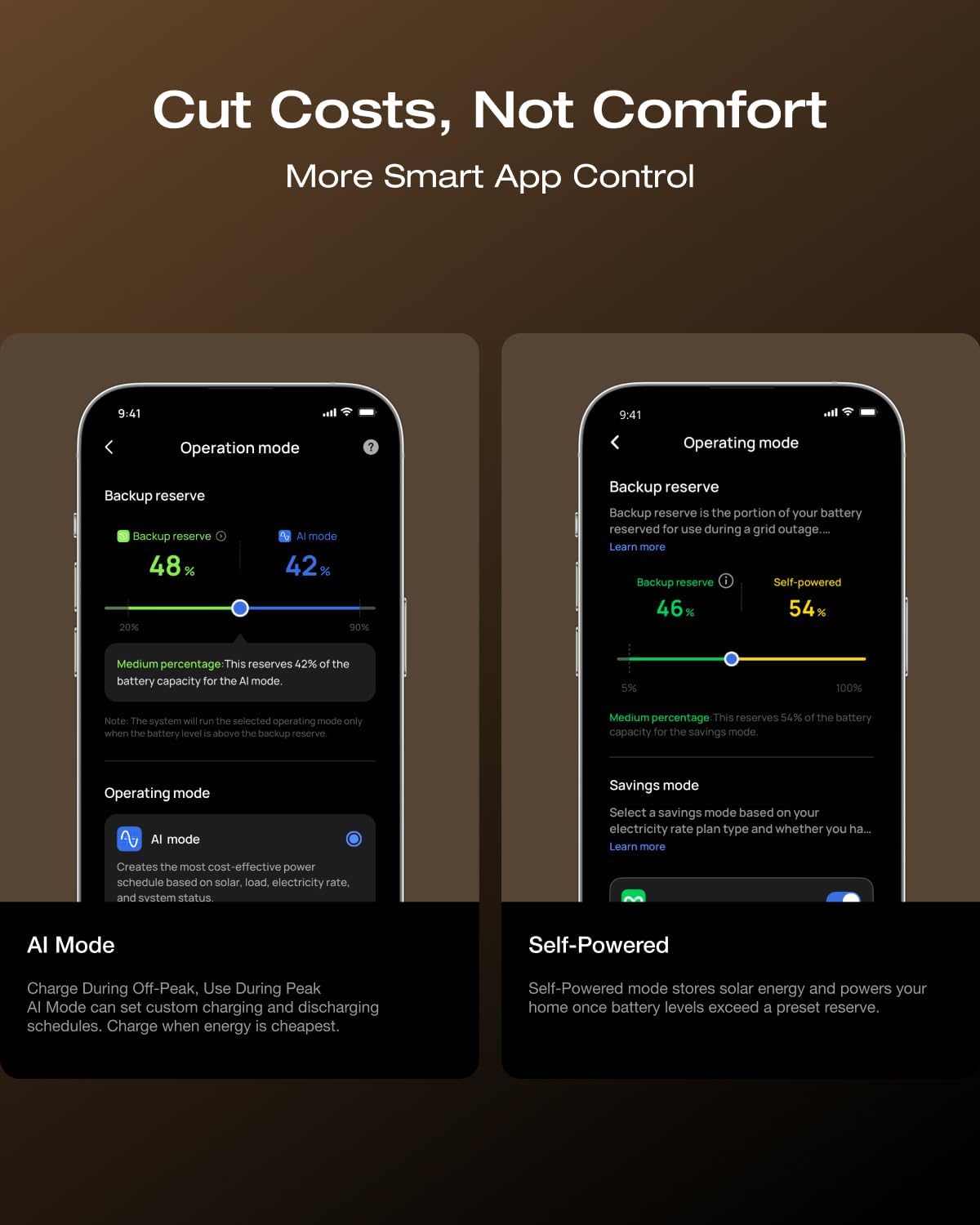 - Smarter App Control – Save on Costs Without Sacrificing Comfort – Connect with the EcoFlow app to monitor energy use in real time, set smart priorities, and cut electricity costs. Easily manage charging and discharging schedules, all while ensuring your comfort and convenience remain top priority.