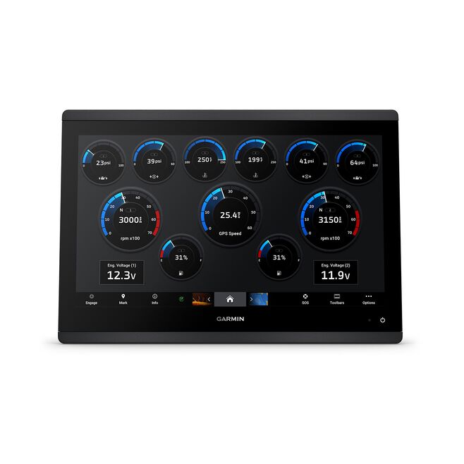 Anglers can enjoy options such as built-in support for the full line of LiveScope™ and Panoptix™ sonars, ClearVü™ and SideVü™ scanning sonars, and Garmin CHIRP traditional sonar (transducer required; sold separately). Once you find the fish, stay on them with Force® trolling motor support and integration. Enjoy simple navigation with support for Garmin Navionics+™ charts with Auto Guidance+™ technology, or upgrade to premium charts from Garmin Navionics Vision+™ cartography for high-resolution relief shading and more (Auto Guidance+ is for planning purposes only and does not replace safe navigation operations). Connect multiple chartplotters, radars, cameras and more with seamless vessel integration on the Garmin Marine Network. Sailors at the helm can enjoy premium sailing features, such as sailing polars, and see laylines, race start line guidance and more with Garmin SailAssist™ features.