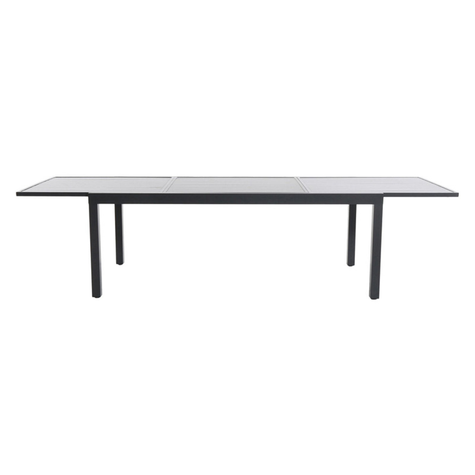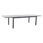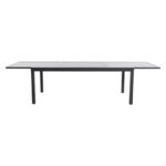 This set is perfect for an entertainer or for smaller gatherings due to its versatility. The set can fit anywhere from 2-10 people comfortably. The expandable slat top table measures 78” at shortest and expands out to 118” when needed. The aluminum chairs are stackable.