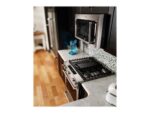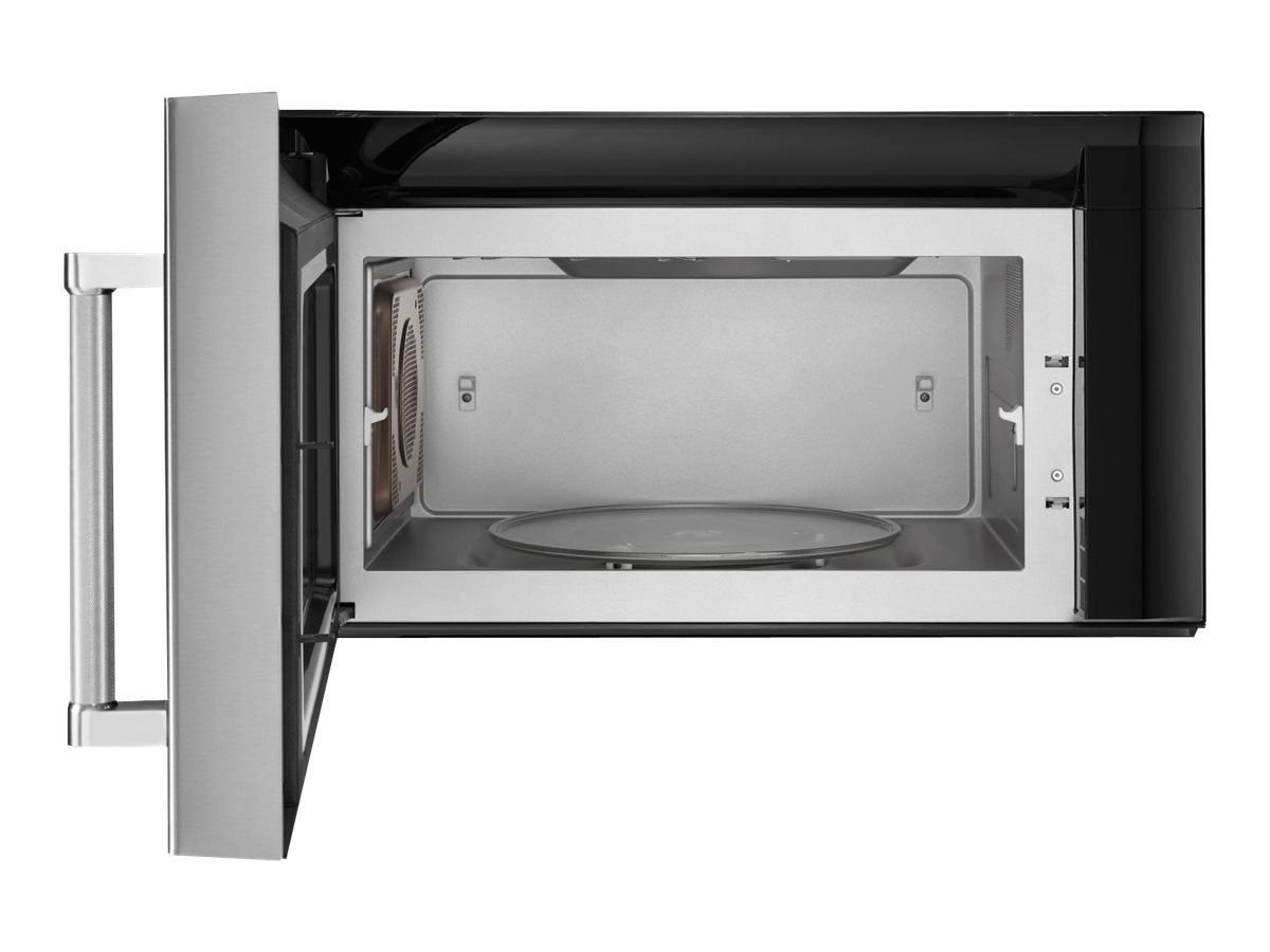 A bold blend of professionally inspired styling with sleek touches for the home. This microwave oven features satin textured handles, precision glass touch controls, a chrome inlaid frame.