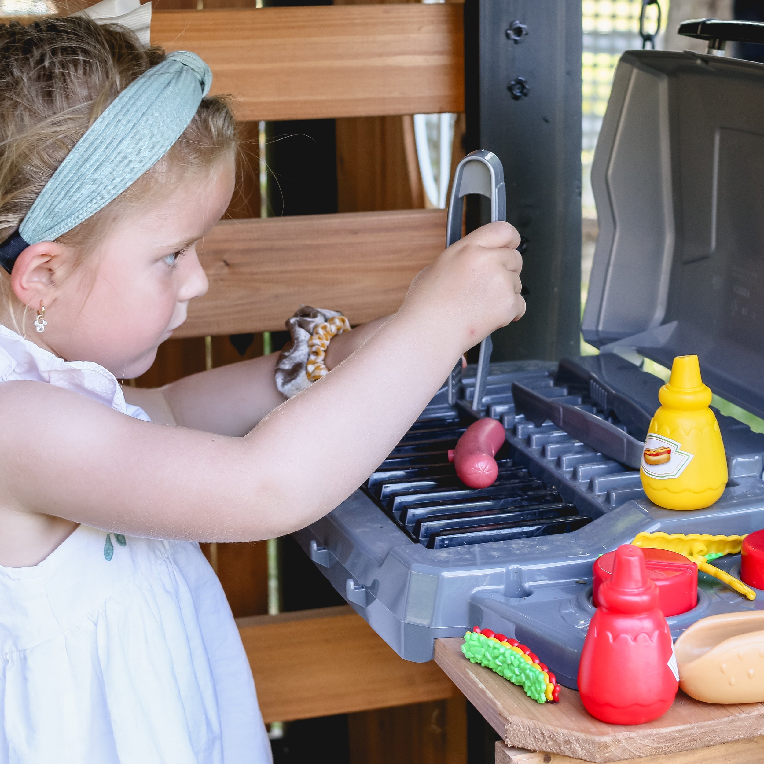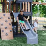 Explore a world of enchantment with the Mystic Tower Swing Set by Backyard Discovery. The centerpiece of this magical play space is the secret door and crawling tunnel that leads to a hidden climbing tower, perfect for imaginative exploration. The fun continues with the large, elevated clubhouse, complete with a covered crow’s nest where young adventurers can keep watch and plan their next quest. Kids can choose their own adventure to the clubhouse by either conquering the rock wall, climbing the rope ladder, or taking the flat step ladder before zooming down the exciting 8-foot speedy wave slide. They’ll love soaring through the air on two classic belt swings or enjoy the fun web disc for a playful swinging experience. The lower play area becomes even more magical with a toy grill and food set for creative cooking fun. Crafted from naturally durable cedar wood, this wooden swing set brings backyard adventures to life while standing up to active play through every season. With a ready-to-assemble design and guided instructions through the interactive BILT® app, this swing set kit offers a hassle-free setup. Transform your backyard into a charming playground where imagination and play come together in the Mystic Tower.