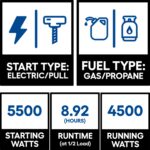 - This generator runs on gasoline or propane, giving you the freedom and flexibility of fuel choice