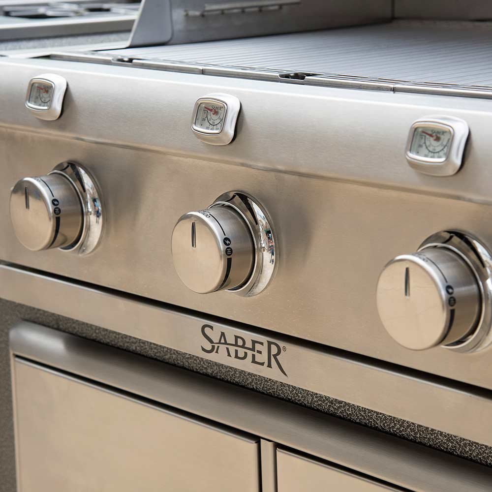 - Patented Saber infrared cooking system allows you to cook up juicier and more flavorful meals than traditional systems that use dry convection air. The unique SABER cooking grates and infrared emitters prevent flare-ups and direct airflow away from the cooking surface, providing evenly distributed, indirect heat for maximum moisture retention while grilling.