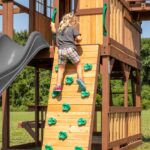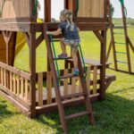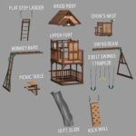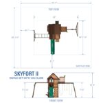 Bring ultimate adventure to your backyard with the Skyfort II Swing Set from Backyard Discovery. This towering wooden swing set transforms your outdoor space into a magical playground, featuring a raised clubhouse complete with a wooden peak roof and charming bay windows that provide the ideal setting for endless fun. Up in the crow’s nest lookout, little explorers can spot distant lands through the included toy telescope and plan their next quest. Kids can challenge themselves on the monkey bars, swinging from rung to rung as they build confidence and strength, while the rock wall offers a fun climb up to the spacious balcony. The speedy 10-foot wave slide delivers an exhilarating ride back to ground level, ensuring smiles with every descent. A lower shaded deck provides a cool retreat where kids can relax or play in the sandbox area, while the attached picnic table with benches creates the perfect spot for enjoying snacks, drawing pictures, or crafting with friends. Ready to assemble and designed with engaging features, this backyard swing set combines classic playground fun with imaginative spaces where children’s creativity can soar. Let the Skyfort II become your children’s favorite outdoor destination, creating endless memories and adventures together.