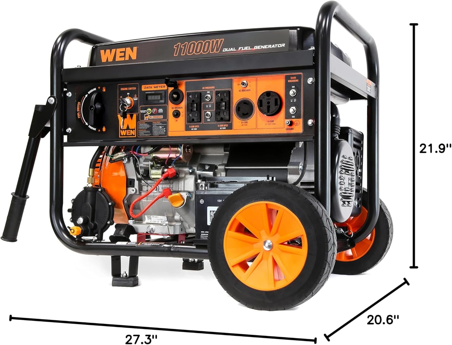 WEN 11,000-Watt 120V/240V Dual Fuel Portable Generator with Wheel Kit and Electric Start (DF1100T)
