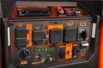 - Includes four 120V GFCI outlets (5-20R), a 120V 30A twist lock outlet (L5-30R), a 120V/240V 50A outlet (NEMA 14-50R), a 12V DC cigarette-lighter-style plug, a bottle of oil, a 47-inch LPG connection hose, and a two-year warranty