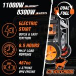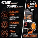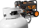 - Switch between gasoline (4750 surge watts, 3800 running watt) and propane (4350 surge, 3500 running) with the simple turn of the selection dial