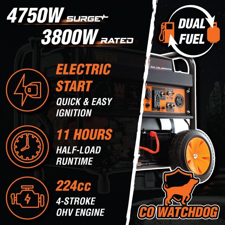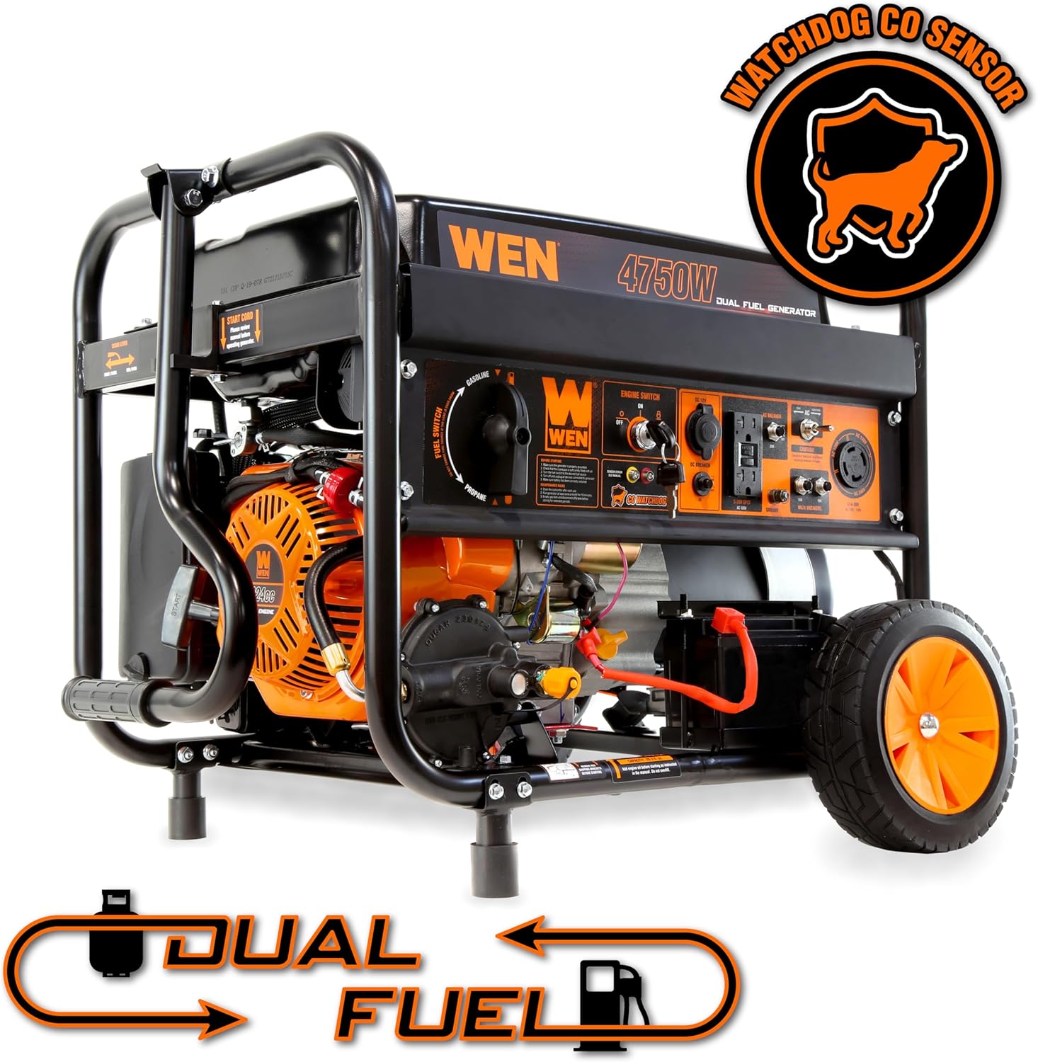 WEN 4,750-Watt 120V/240V Dual Fuel Portable Generator with Wheel Kit and Electric Start (DF475T)