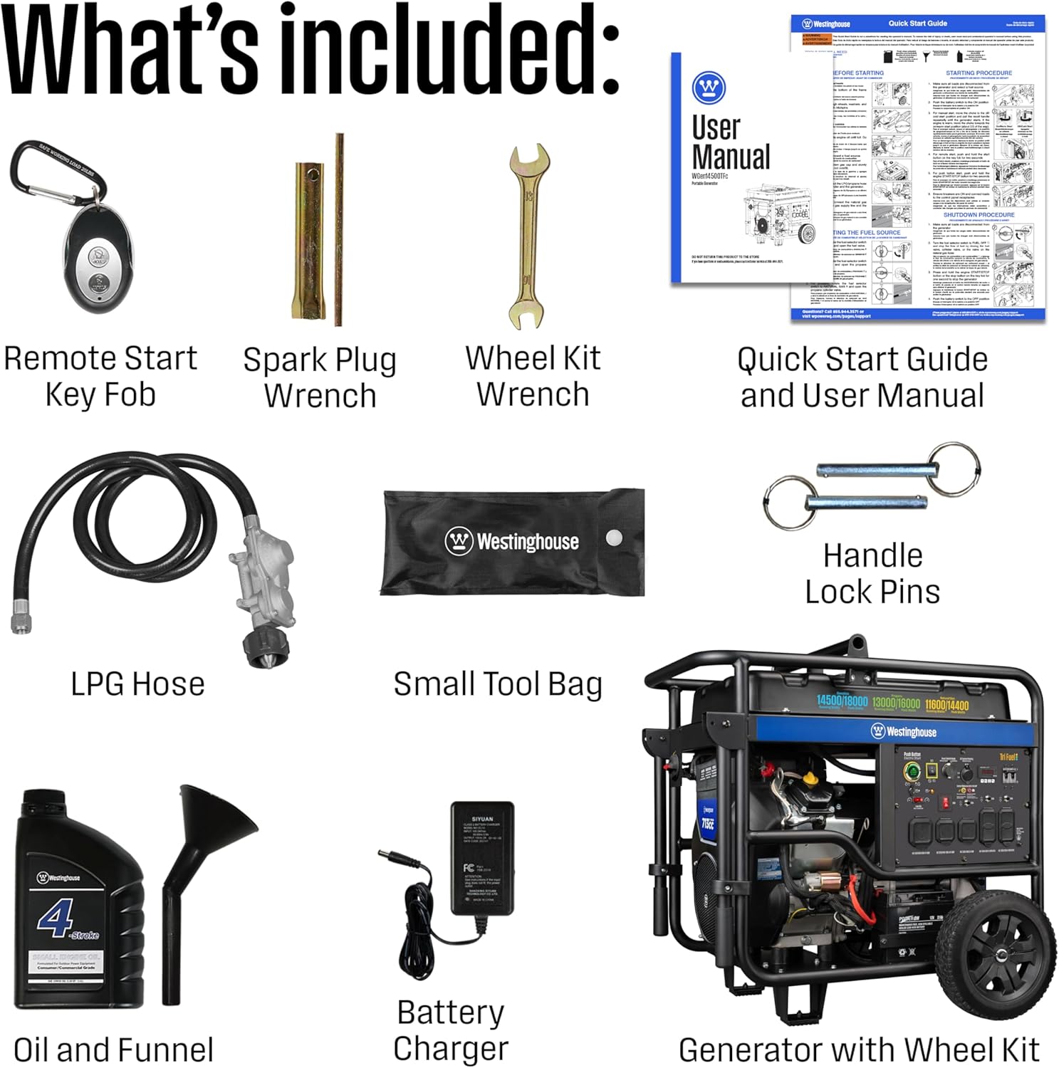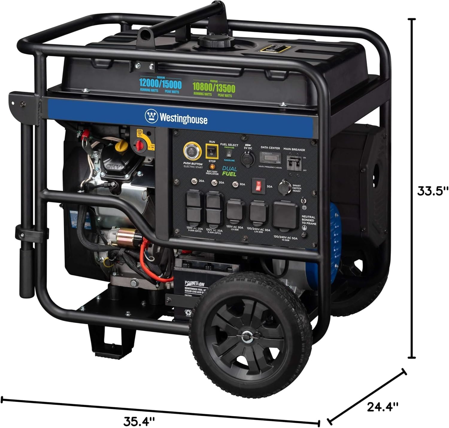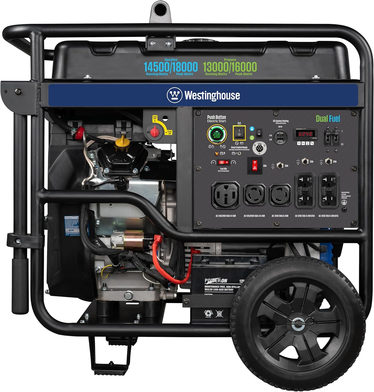 Westinghouse 18000 Peak Watt Dual Fuel Home Backup Portable Generator, Remote Electric Start, Transfer Switch Ready, Gas and Propane Powered