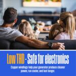 • Engineered with Low THD, So It’s Safe for Sensitive Electronics. Power Phones, Computers, TVs and More. Stay Connected with People, News and Entertainment During Power Outages, or on Jobsites and Campsites. Durable Copper Windings Help Your Generator Produce Cleaner Power, Run Cooler and Last Longer
